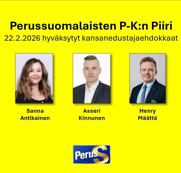 Me Perussuomalaisissa tiedämme, että asiat eivät muutu itsekseen, vaan niille täytyy tehdä jotain. Ehdokkailtamme ei vaadita erityistä politiikan osaamista, vaan asenne ratkaisee. Olemme jo saaneet ehdokkaiksi monenlaisia ihmisiä – naisia, miehiä, nuoria, perheellisiä, senioreita, opiskelijoita, työntekijöitä, virkamiehiä, johtajia, yrittäjiä jne. ja heistä jokainen tuo mukanaan oman asiantuntemuksensa.